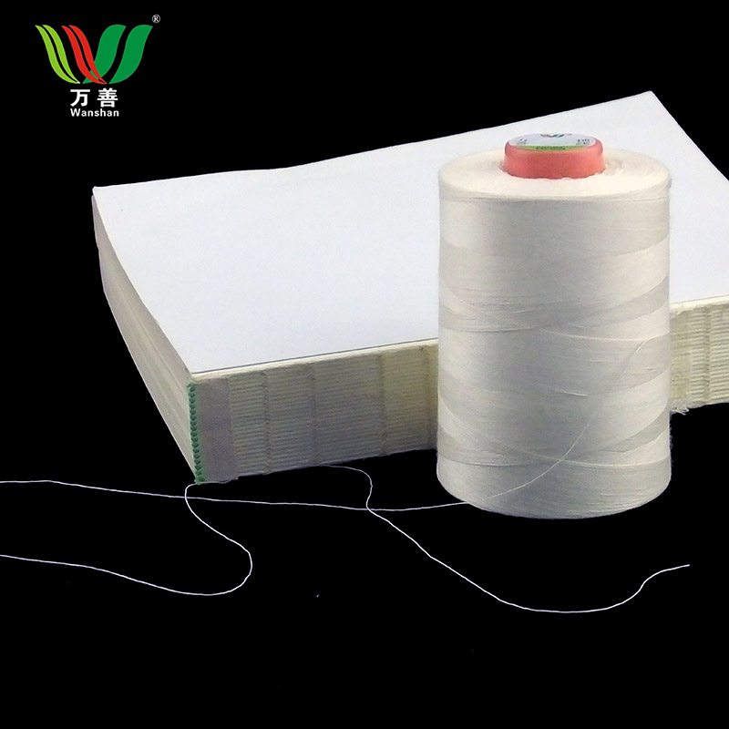优点:产品用料优良,耐高温、不起毛、拉力强、上机不易断线,适用各类国产、进口高速锁线机,成品书书脊结实牢固。